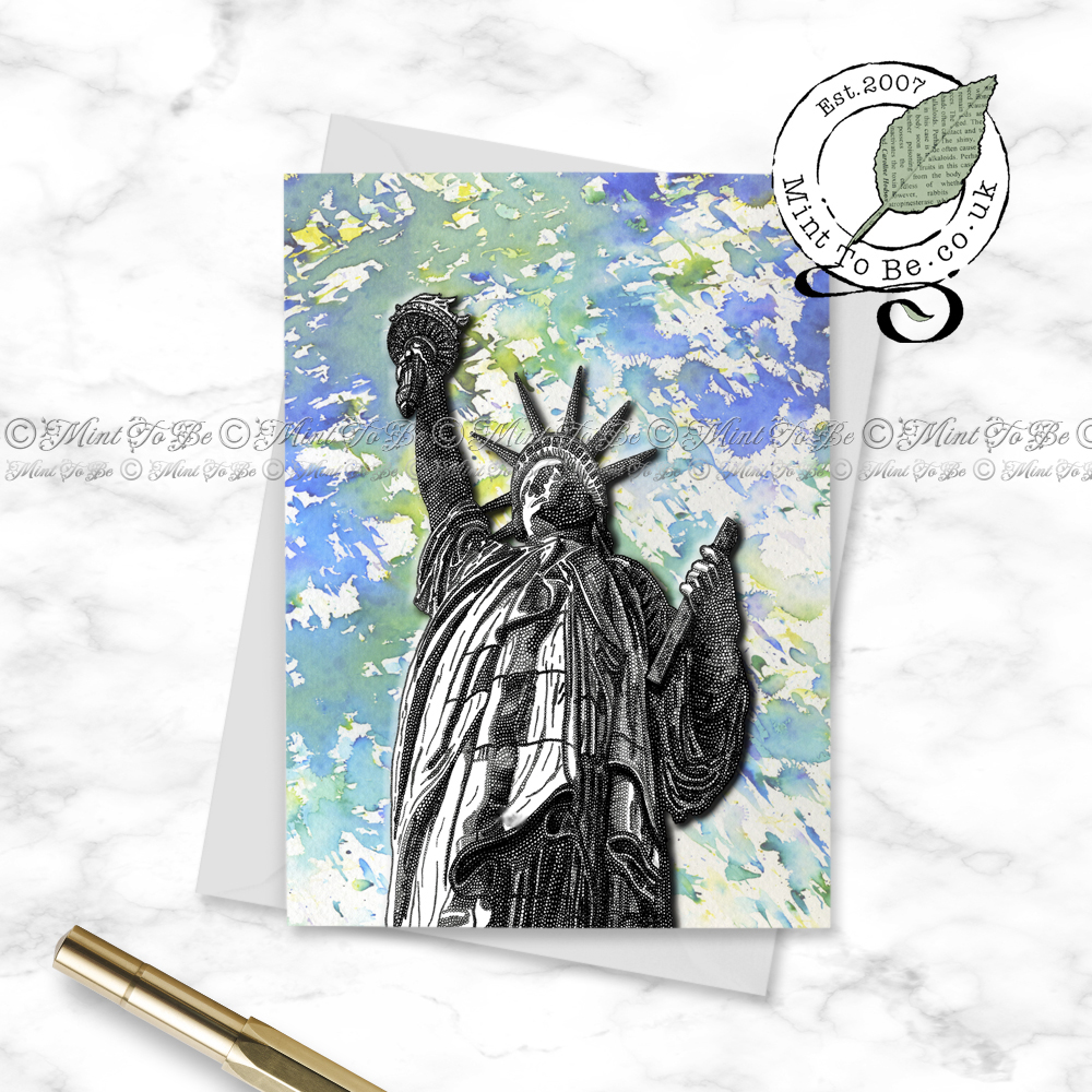 A greetings card created from one of my original dip pen and ink drawings, using a vintage ink pen and featuring the Statue of Liberty, USA.