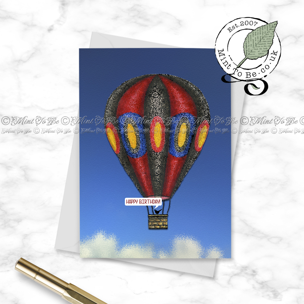 A greetings card created from one of my original mixed media pieces from a hot air balloon seen in the USA.