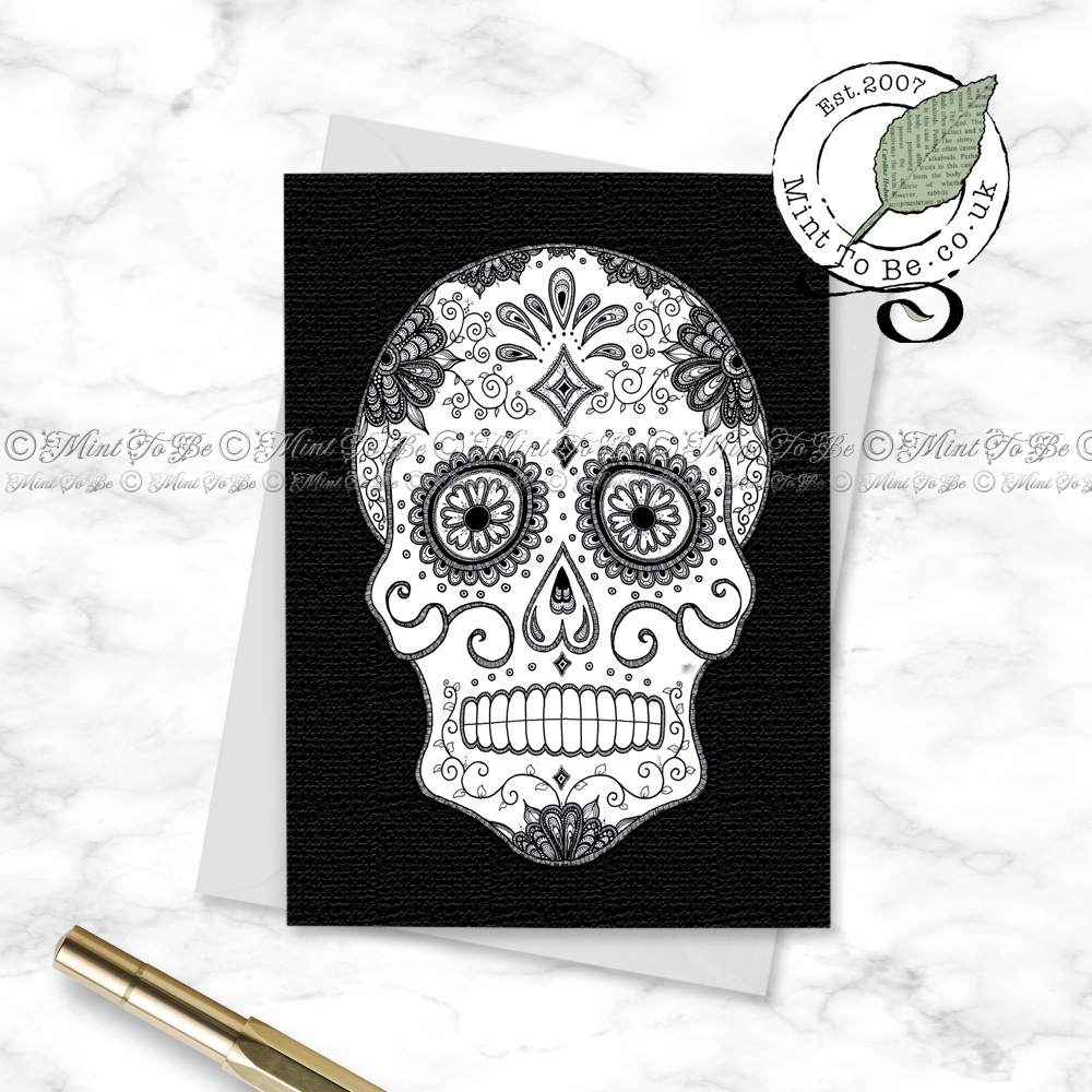 Ideal for: Anyone who loves sugar skulls, Day of the Dead, gothic icons, Mexicana, travel, ink drawings, art.