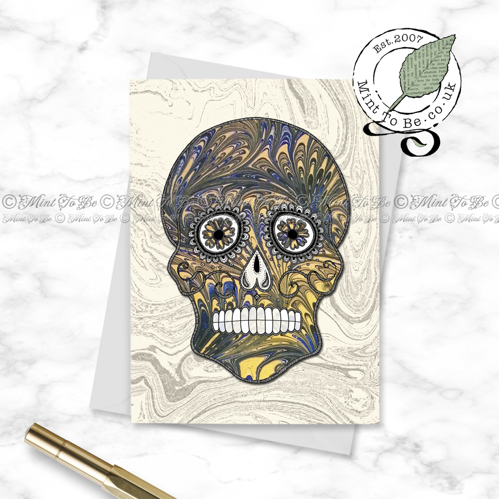 Ideal for: Anyone who loves sugar skulls, Day of the Dead, gothic icons, Mexicana, marbling, travel, ink drawings, art.