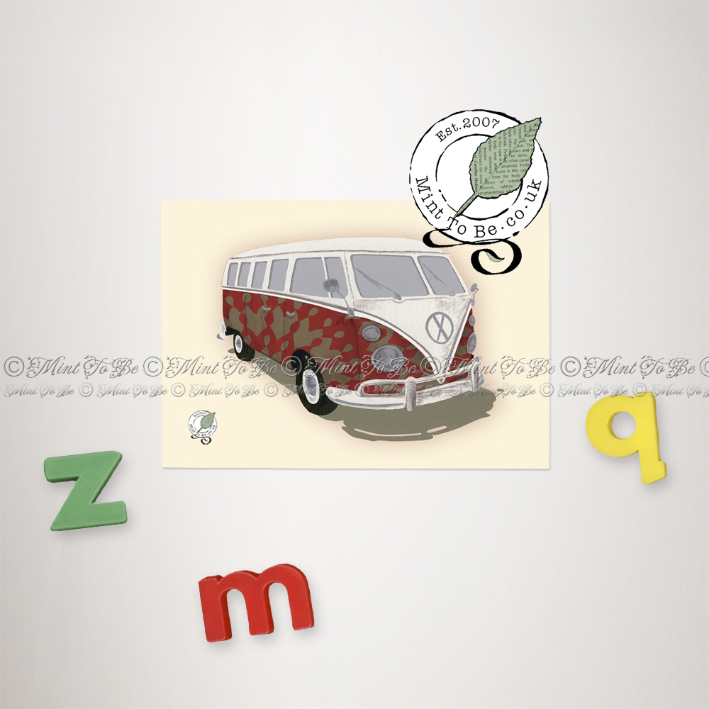 Artify your fridge, metal filing cabinets or magnetic notice boards with this slimline, flexible art magnet, reproduced from a miniaturisation of one of my original recycled and textured inlaid paper marquetry pieces featuring a restored campervan spotted in the USA. These magnets are super slim and very lightweight so whilst they won’t hold up tatty shopping lists and take away menus, they do make great miniature pieces of artwork for your fridge and, since they have an extremely low profile, they're not easily knocked off if someone brushes past the fridge/filing cabinet.