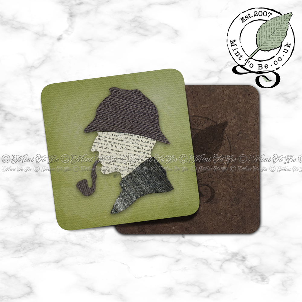 Artify your morning cuppa, workplace brew or evening tipple! This glossy hardboard coaster has been reproduced from one of my original recycled and textured inlaid paper marquetry pieces featuring Sherlock Holmes.