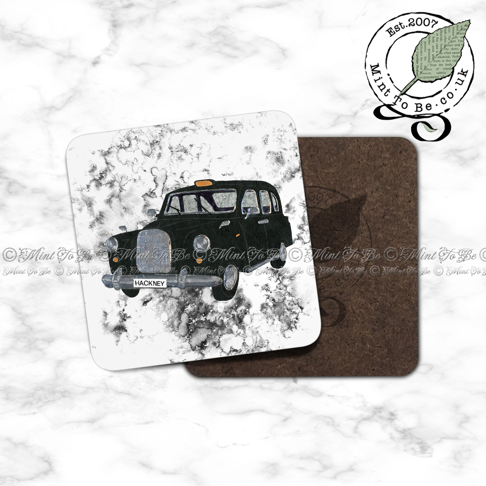 Artify your morning cuppa, workplace brew or evening tipple! This glossy hardboard coaster has been reproduced from one of my original recycled and textured inlaid paper marquetry pieces featuring a black cab on the streets of London.