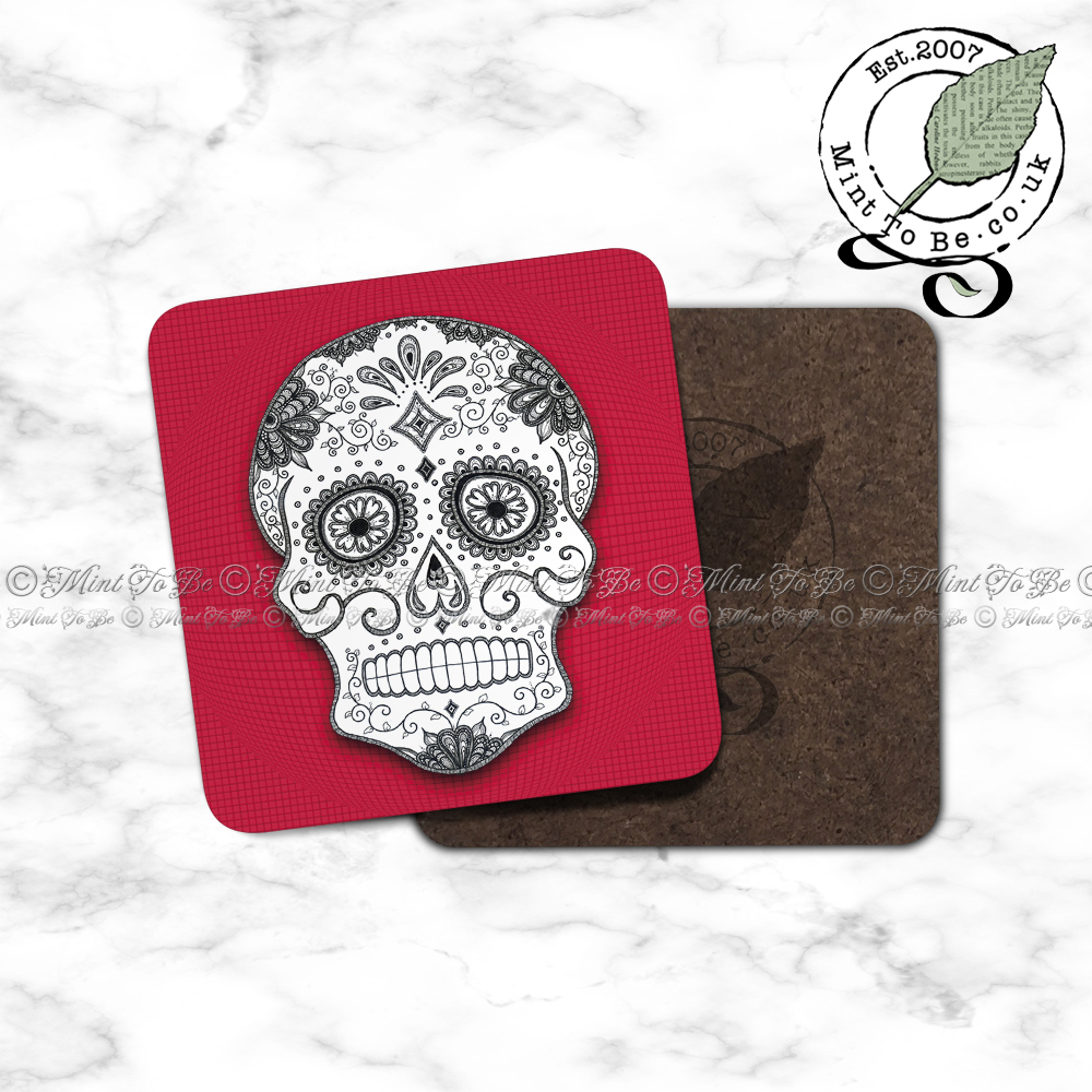 Ideal for: Anyone who loves sugar skulls, Day of the Dead, gothic icons, Mexicana, travel, ink drawings, collecting coasters, art.
