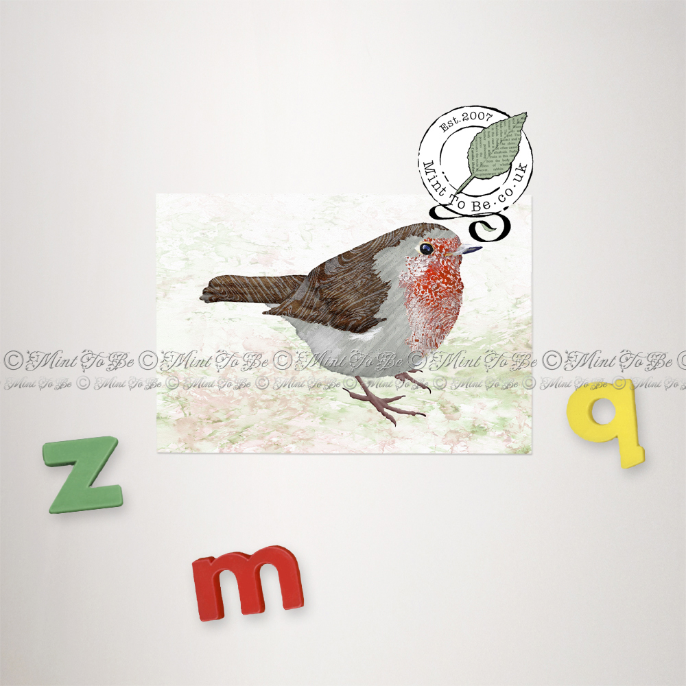 Artify your fridge, metal filing cabinets or magnetic notice boards with this slimline, flexible art magnet, reproduced from a miniaturisation of one of my original recycled and textured inlaid paper marquetry pieces featuring a robin seen in Ireland, although we have robins nesting in our garden too.