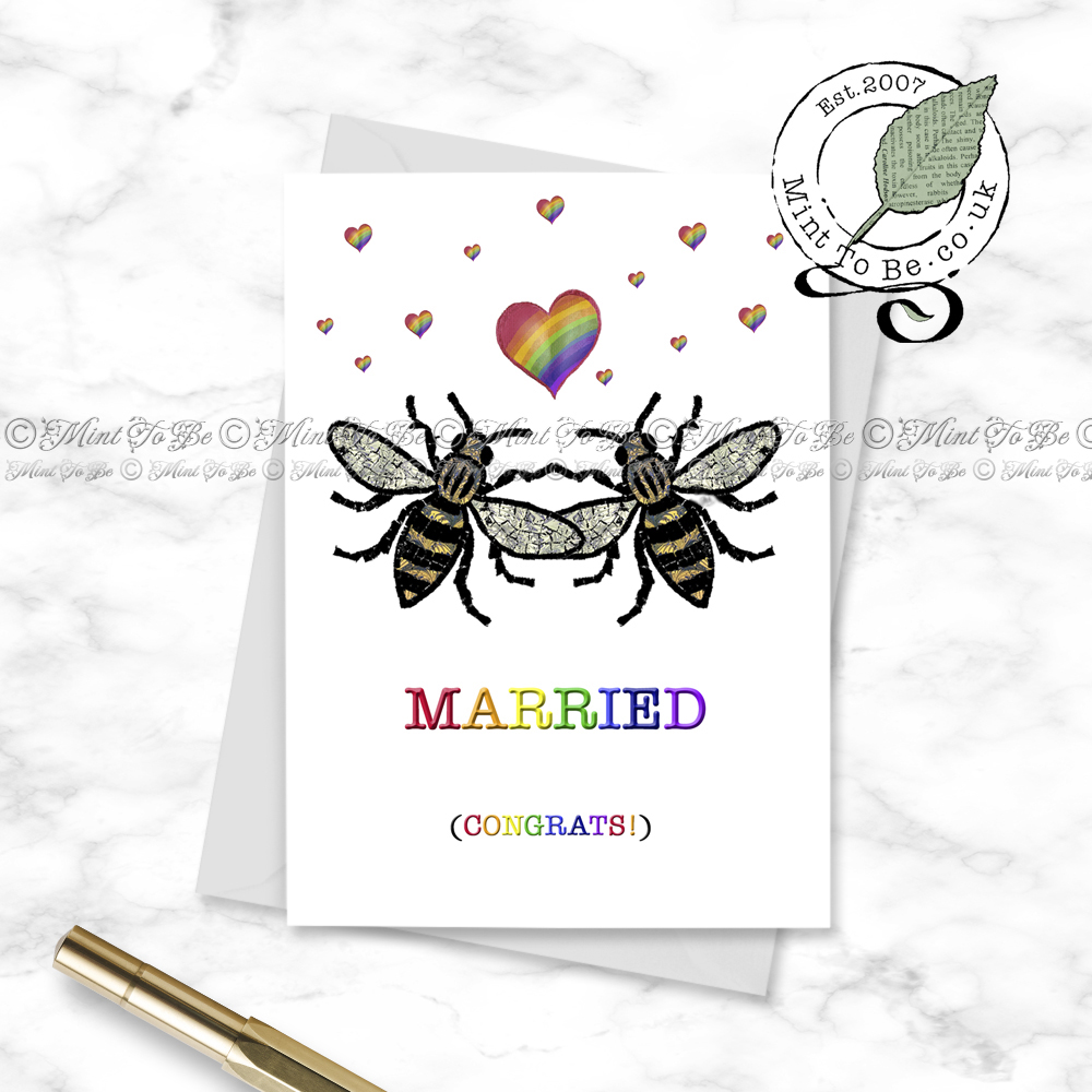 Ideal for: Anyone who loves a happy couple, Pride, Love is Love, Gay wedding, British icons, design icons, Manchester, the Manchester Bee, bees, travel, history, all things British, UK, art.