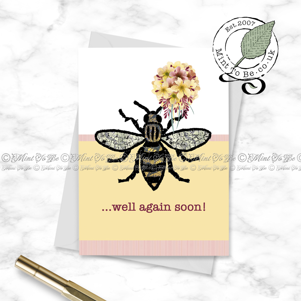 A greetings card created from one of my original mixed media collage pieces featuring the Manchester Bee and based on the worker bee mosaic on the floors of the Manchester town hall. Blank inside for your own message. Inspired from what I see in my garden, on my field work, travels and from life experiences, I work only from photographs that I have taken or sketches that I have made in the field. Each art card is printed in the UK by an FSC (Forest Stewardship Council) certified printing company, with a zero waste to landfill ethos, using responsibly sourced FSC medium to heavyweight smooth board and supplied with an FSC heavyweight white or pearlescent paper envelope.