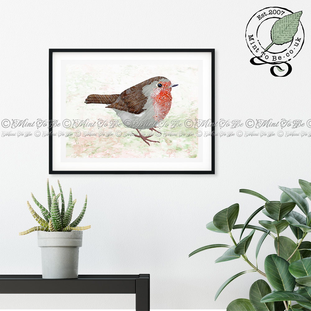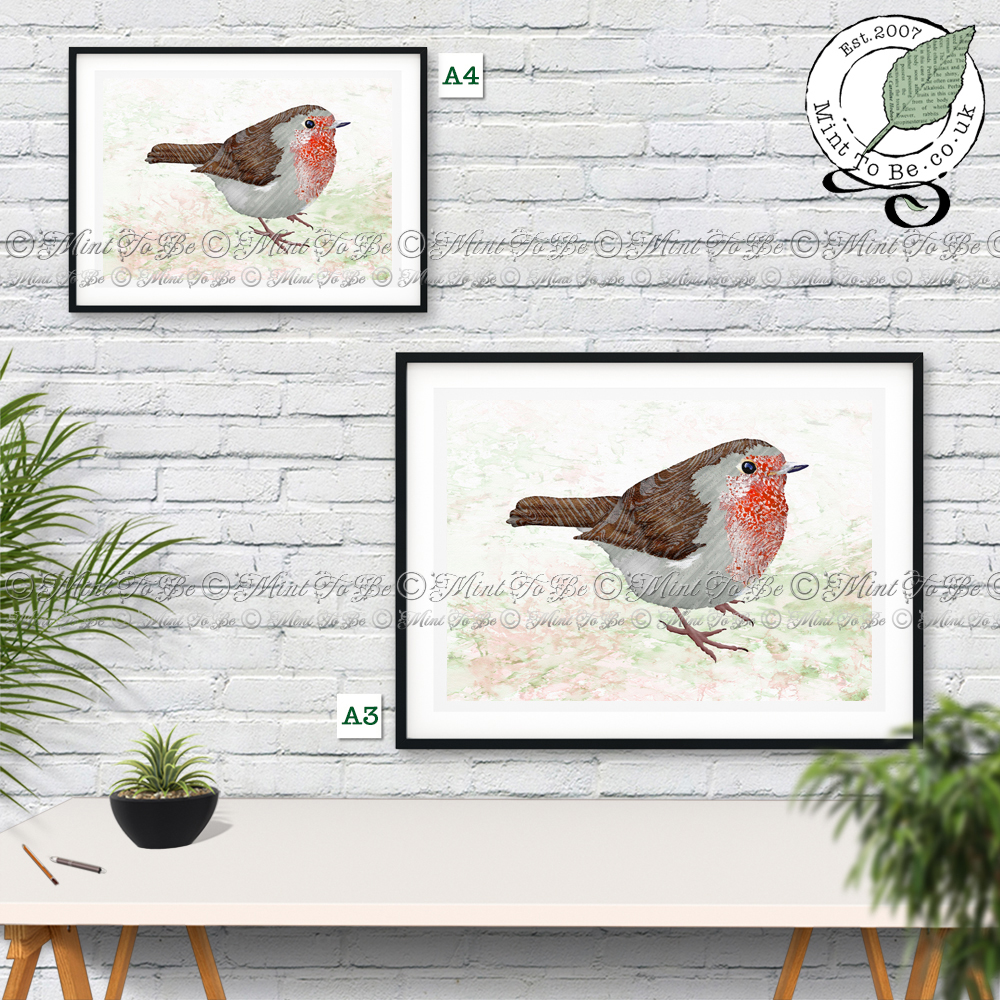 Have this little fella always watching over you by adorning your walls in your home or office with this beautiful paper marquetry robin art print. He was originally created using recycled papers, carefully selected, cut and painstakingly inlaid by hand to give a lifelike impression.