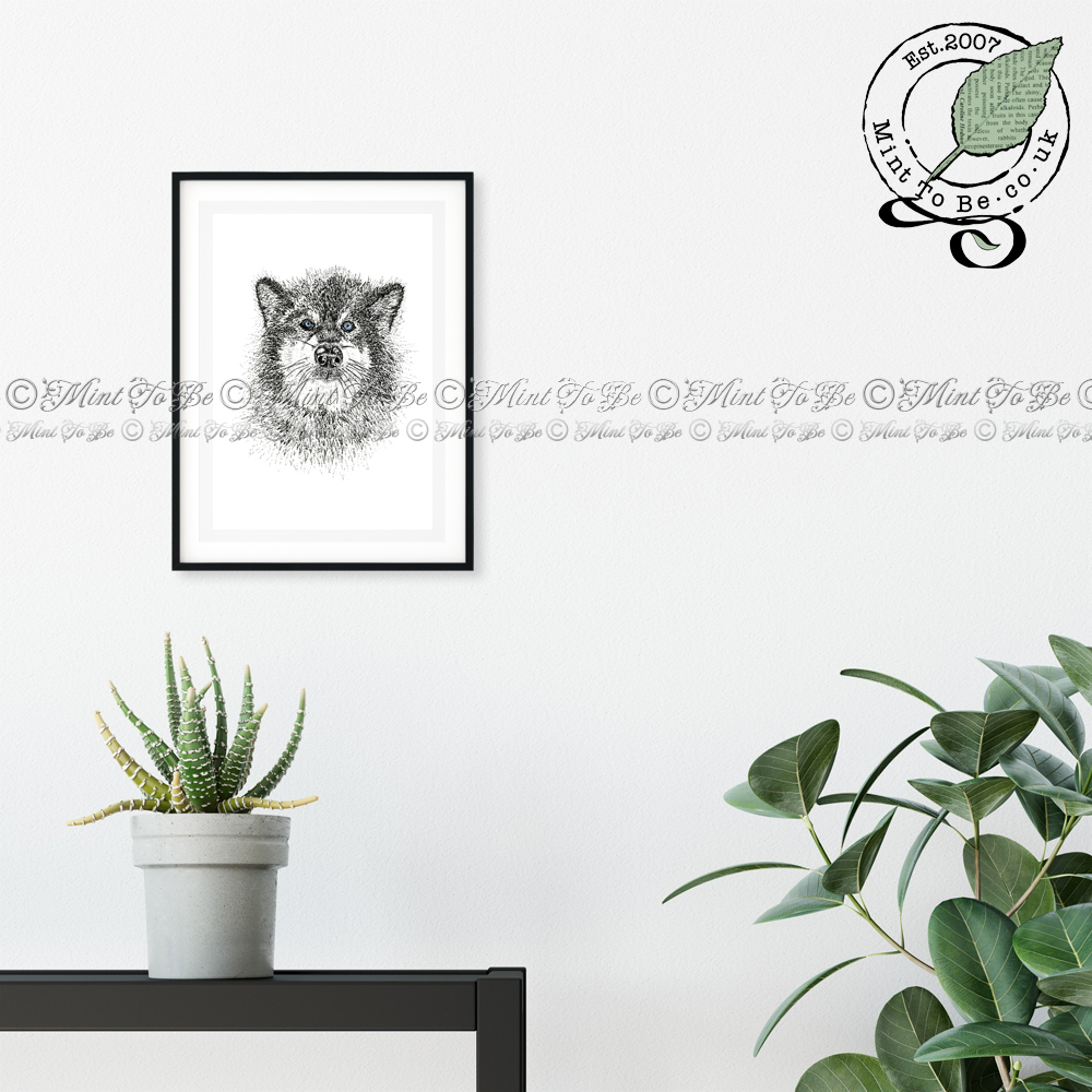 Decorate your favourite living space with this highly detailed art print featuring the face of an Alaskan Malamute; drawn entirely with thousands of tiny stippled ink dots, using a vintage nib pen; there are no straight lines in this piece!