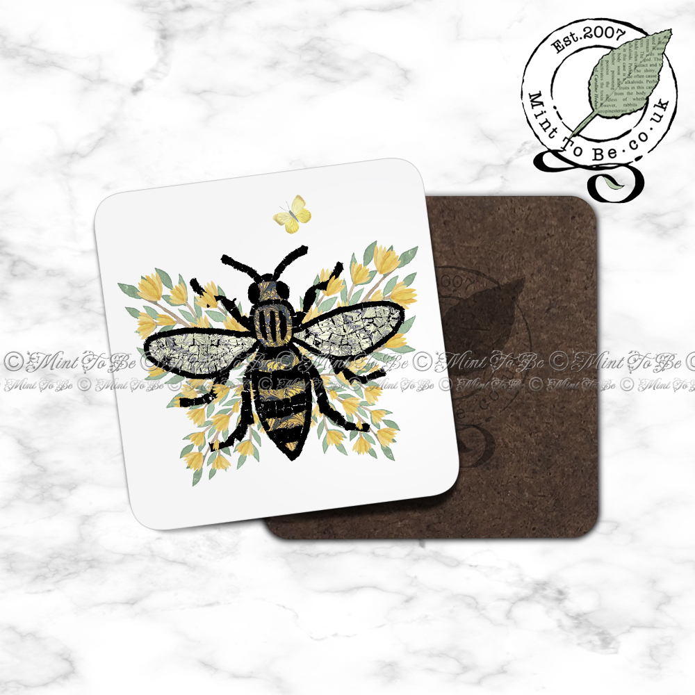 Artify your morning cuppa, workplace brew or evening tipple! This glossy hardboard coaster has been reproduced from one of my original mixed media collage pieces featuring the Manchester Bee and based on the worker bee mosaic on the floors of the Manchester town hall.