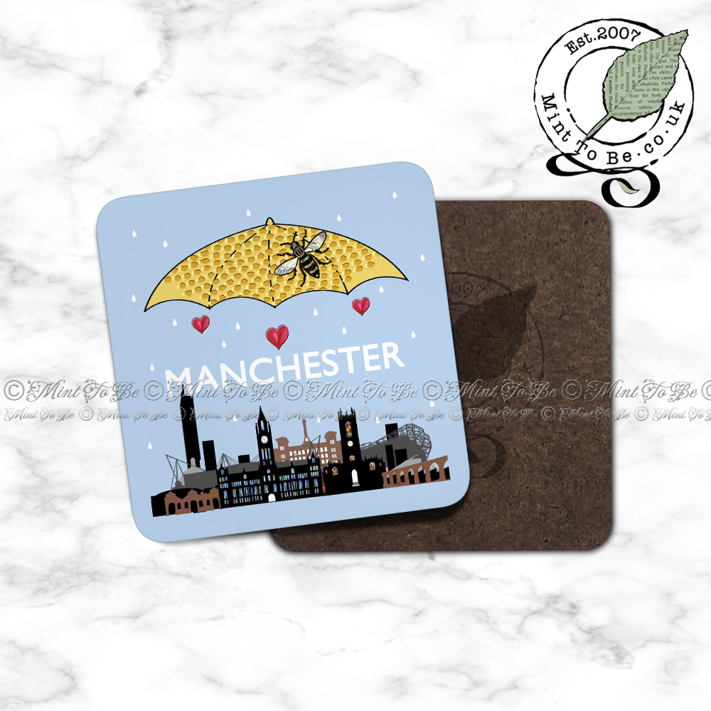 Ideal for: Anyone who loves British icons, design icons, Manchester, the Manchester Bee, skylines, landmarks, travel, all things British, UK, collecting coasters, art.