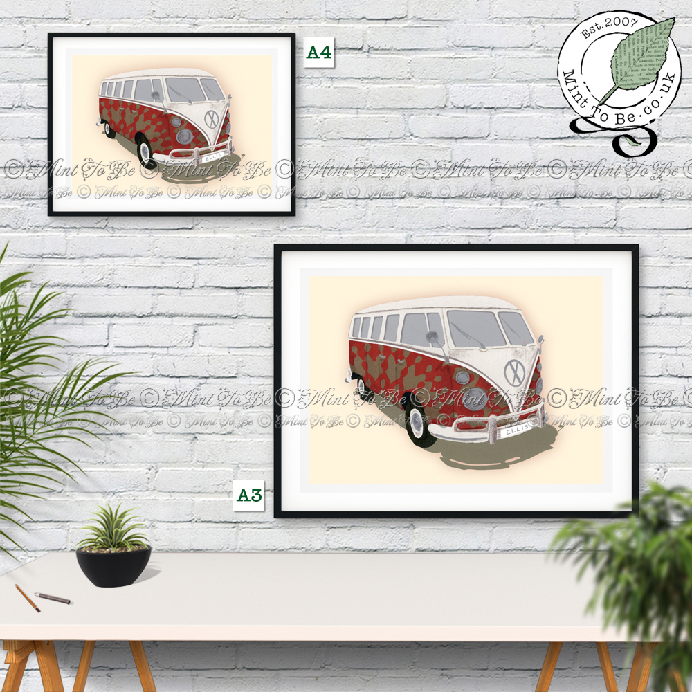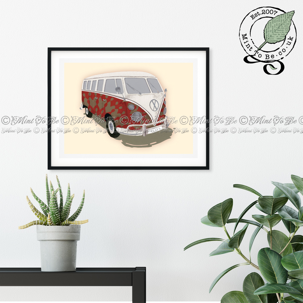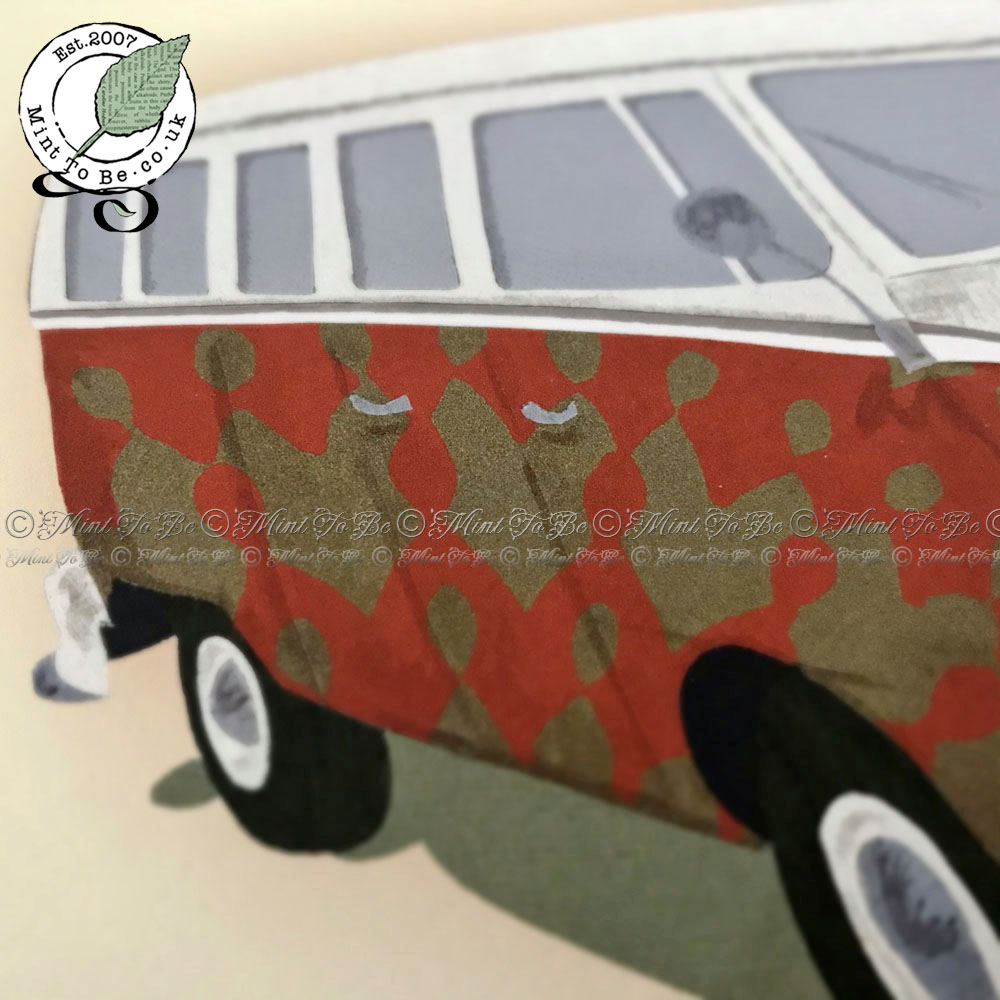 Add a focal point to your home, office or even in your own campervan that is sure to be talked about with this unique recycled paper marquetry campervan print. Inspired by the sight of a beautiful restored campervan on a road trip along the Pacific Highway in the USA, this piece was originally created using carefully selected and textured recycled papers, from which many tiny pieces were cut and painstakingly inlaid to create this intricate artwork.