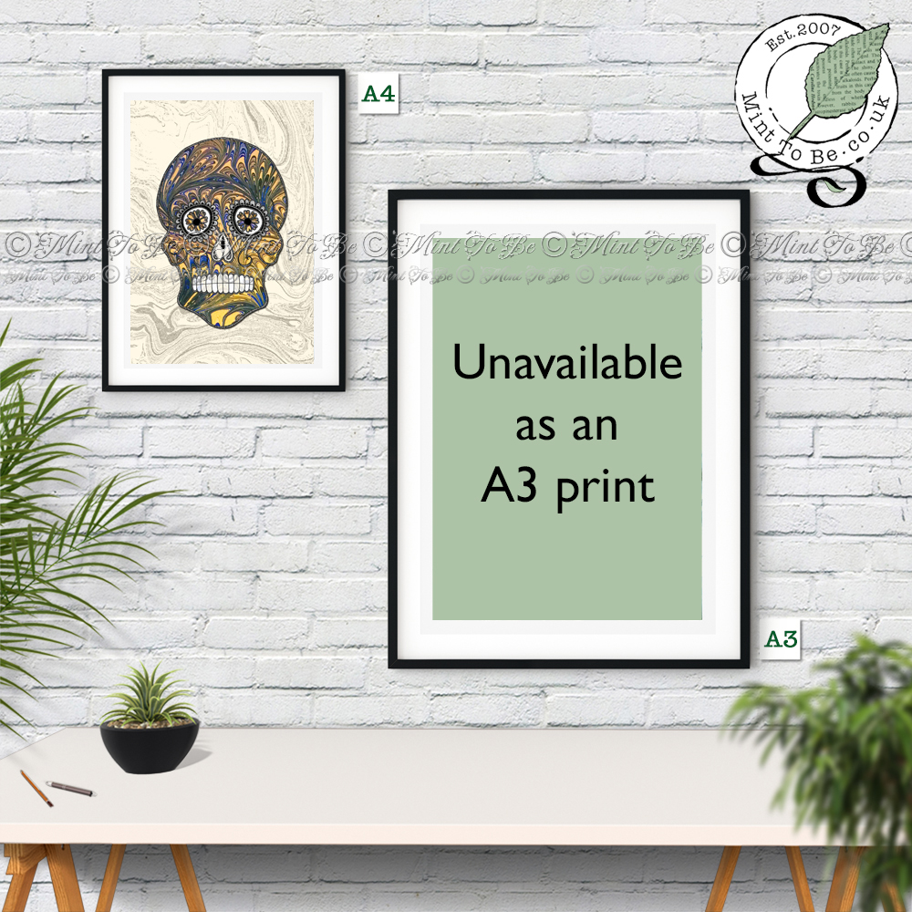 Art prints are printed with a white border and fit into any standard sized A3 or A4 frame.