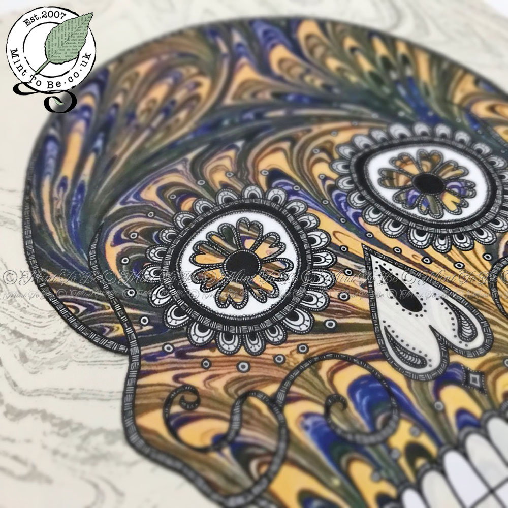 Ideal for: Anyone who loves sugar skulls, Day of the Dead, gothic icons, Mexicana, travel, ink drawings, marbling, art.